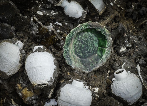 File photo taken on Jan. 29, 2015 shows artifacts discovered on the Nanhai (South China Sea) No. 1 ship at the "Crystal Palace" at the Marine Silk Road Museum in Yangjiang, south China's Guangdong Province. (Xinhua/Liu Dawei)