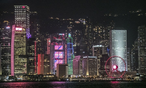 This photo shows the evening view at tourist attraction Victoria Harbour, Hong Kong, China. (Xinhua)