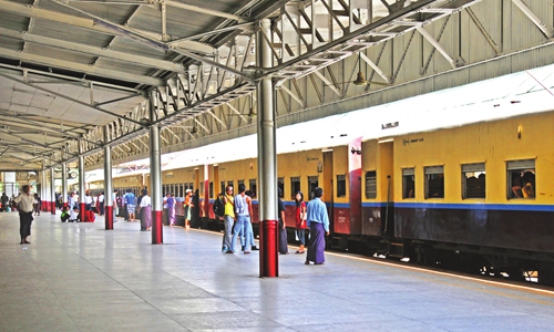 A train stops at Yangon station in Myanmar as efforts were intensified by residents to improve living standards in the city. Photo: VCG
