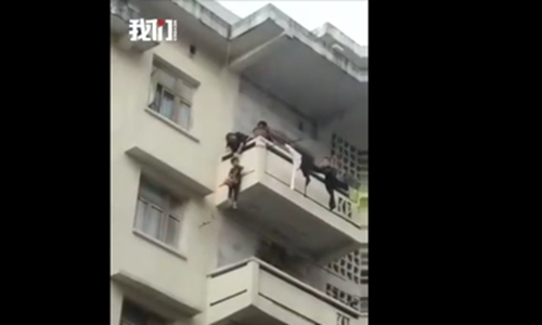 A grandmother, who tied a rope around her 7-year-old grandson and lowered him onto a fourth floor balcony to save her cat in Nanchong, Southwest China's Sichuan Province, got a blast of criticism from netizens and local police on Sunday afternoon.