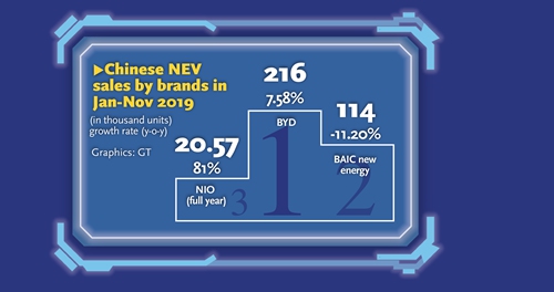 Despite economic downward pressure, China's sales of new-energy vehicles (NEVs) maintained a growth trend in 2019. In the first 11 months, China's sales of NEVs reached 1.04 million, up 1.3 percent year-on-year, data from the China Association of Automobile Manufacturers showed.
