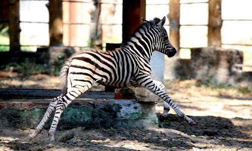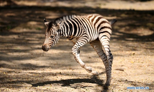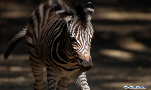 A six-day-old plains zebra is seen at the Zoological Gardens in Yangon, Myanmar, Jan. 8, 2020. (Xinhua/U Aung)