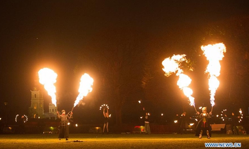 People perform during Orthodox Christmas celebrations in St. Petersburg, Russia, Jan. 7, 2020. Photo:Xinhua