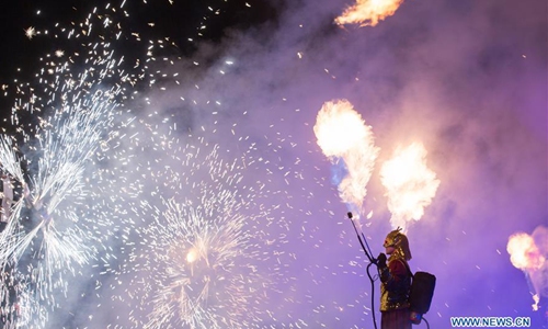 Fireworks explode to celebrate the Orthodox Christmas in St. Petersburg, Russia, Jan. 7, 2020. Photo:Xinhua