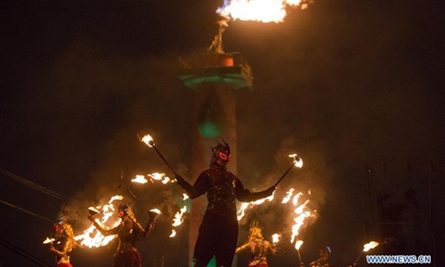 A man performs during Orthodox Christmas celebrations in St. Petersburg, Russia, Jan. 7, 2020. Photo:Xinhua