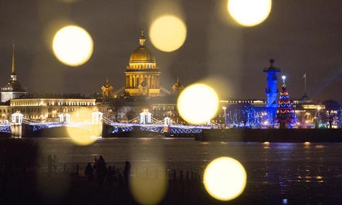 Photo taken on Jan. 7, 2020 shows a festive view of St. Petersburg on the night of Orthodox Christmas in Russia. Photo:Xinhua