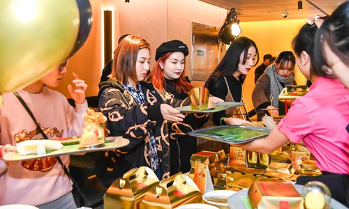 Customers sample food at an event held by McDonald's China in Beijing on Tuesday. The company said it will launch special products on Wednesday in more than 3,000 stores with the theme of "gold" for the coming Spring Festival. In the Spring Festival in 2018, the retail and catering industry achieved sales of 926 billion yuan ($136.98 billion), up 10.2 percent year-on-year. Photo: Courtesy of McDonald's China