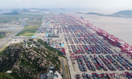Aerial photo shows the Yangshan Deep Water Port of east China's Shanghai. (Xinhua/Ding Ting)