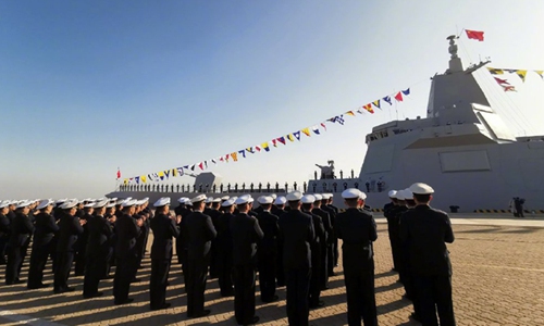 A commissioning ceremony for China's first Type 055 guided-missile destroyer Nanchang is held in Qingdao, East China's Shandong Province on Sunday. Photo: Xinhua
