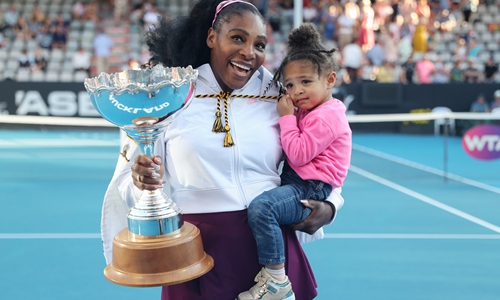 Serena Williams celebrates with her daughter Alexis Olympia after her win in the women's singles final match during the Auckland Classic tennis tournament in Auckland on Sunday. Photo: AFP