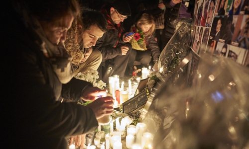 Mourners light candles for the victims of Ukrainian Airlines flight 752 which crashed in Iran during a vigil at Mel Lastman Square in Toronto, Canada on Friday. Photo: AFP