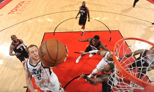 Joe Ingles of the Utah Jazz handles the ball against the Houston Rockets at Toyota Center on Wednesday in Houston, Texas. Photo: VCG