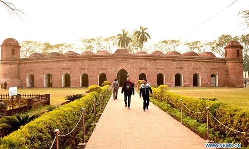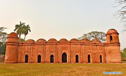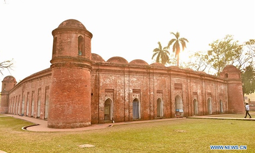 Photo taken on Jan. 12, 2020 shows Sixty Dome Mosque in Bagerhat, Bangladesh. The Sixty Dome Mosque is a UNESCO World Heritage Site.Photo:Xinhua