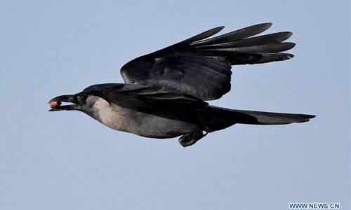 A bird forages near a beach of Kuwait City, Kuwait, Jan. 12, 2020. Photo:Xinhua