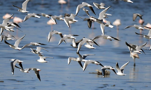 Birds fly over the waters in Kuwait City, Kuwait, Jan. 12, 2020. Photo:Xinhua