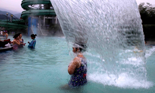 Visitors enjoy themselves in a hot spring in Suichuan county, East China's Jiangxi Province on Monday where the temperature was only 7 C. Photo: cnsphoto
