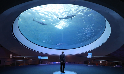 A man watches fish and sharks swim at the Miami Seaquarium on Wednesday, in Miami, Florida. Founded in 1955, it is one of the oldest oceanariums in the US. Photo: AFP