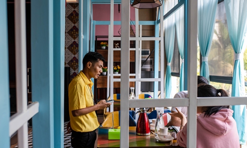 An employee from Myanmar works in a restaurant in Jinghong City, southwest China's Yunnan Province, Jan. 9, 2020. Photo:Xinhua