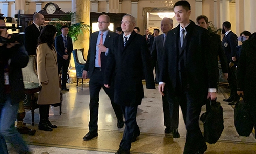 Chinese Vice Premier Liu He arrives at his hotel Monday afternoon in Washington. He is expected to conclude a phase one trade agreement with the US. Photo:CGTN