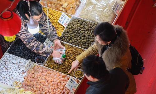 People select goods at a shopping fair held to greet the upcoming Spring Festival at Hunan Province Exhibition Hall in Changsha, capital of central China's Hunan Province, Jan. 15, 2020. Photo:Xinhua
