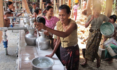 Local residents in Myanmar celebrate the installment of water supply system, a project aided by CNPC. Photo: Courtesy of CNPC