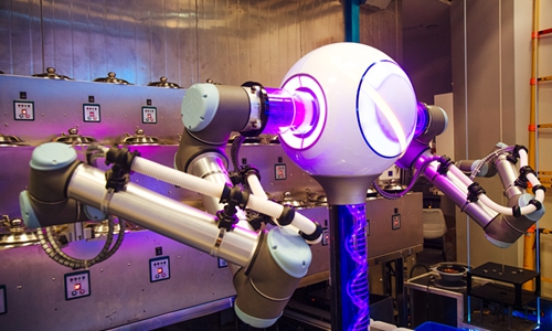 The 46 robots in the restaurant are developed by Foodom Restaurant Group. "The average cooking time per dish of a robotic wok is between three to five minutes," said Yan Weixin, head of the research and development department of Foodom.