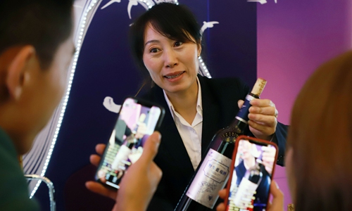 A staff member introduces an ice wine to customers during an ice wine festival. Photo:Xinhua