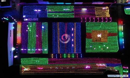 Aerial photo taken on Jan. 19, 2020 shows light decorations in Zhong'erzhang Village in Hebi City, central China's Henan Province. The village has taken measures to boost its nighttime economy, including updating landscape lighting and holding nighttime performance. (Xinhua/Feng Dapeng)