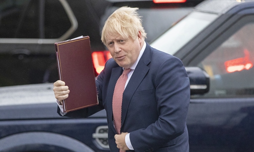 British Prime Minister Boris Johnson arrives for a meeting at Stormont Castle on the Stormont Estate in Belfast, Northern Ireland on Monday. Johnson hailed a "historic time" for Northern Ireland ahead of a visit to mark the reopening of its power-sharing government after three years of deadlock. Photo: AFP