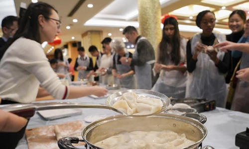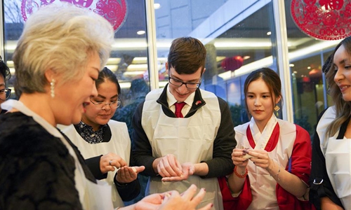 Students make dumplings during a New Year gala for Chinese and international youth in New York, the United States, Jan. 19, 2020. The great hall of the Chinese Consulate General in New York was filled with joyful laughter, beautiful melodies and the smell of dumplings on Sunday night. Some 200 Chinese, U.S. and other international college students gathered here for a Lunar New Year Gala to welcome the Year of the Rat. Photo:Xinhua