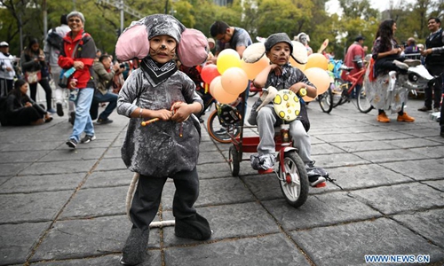 Children participate in a bicycle zodiac decoration competition in Mexico City, Mexico, Jan. 19, 2020. Dozens of zodiac decorations works are shown during the competition, which offered Mexican people an access to the unique culture of Chinese New Year. Photo:Xinhua