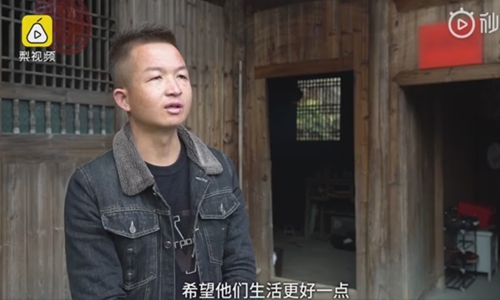 Wang Yanglin, man from a poor village in Central China became the lucky winner of almost 6,000 kilograms of goods for Spring Festival, including food and televisions, and decided to share them with the whole village. Screenshot from Pear Video