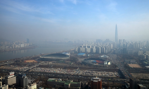 Photo taken on Feb. 22, 2019 shows the Lotte World Tower and other buildings in Seoul, South Korea. (Xinhua/Wang Jingqiang)