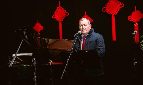 Deputy Mayor of Dublin Tom Brabazon addresses the opening ceremony of Dublin Chinese New Year Festival in Dublin, Ireland, Jan. 23, 2020. Dublin Chinese New Year Festival, an annual event organized by Dublin City Council, opened here on Thursday night. (Xinhua)