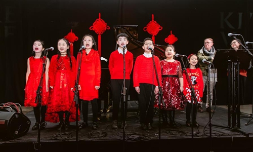 A group of children sing at the opening ceremony of Dublin Chinese New Year Festival in Dublin, Ireland, Jan. 23, 2020. Dublin Chinese New Year Festival, an annual event organized by Dublin City Council, opened here on Thursday night. (Xinhua)