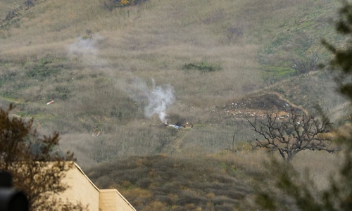 The site of a helicopter crash in Calabasas of southern California, the United States, Jan. 26, 2020. Retired NBA star Kobe Bryant was one of five people killed in a helicopter crash in Calabasas of southern California. (Photo: Xinhua)