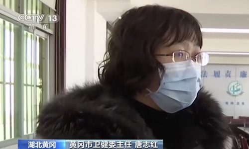 Tang Zhihong, dean of the Huanggang health authority, made a phone call while being asked questions. Tang explained that they had special personnel in charge of combating the virus.