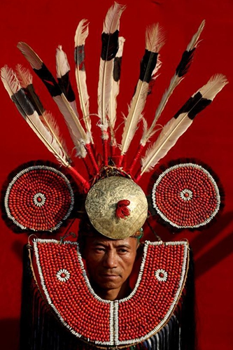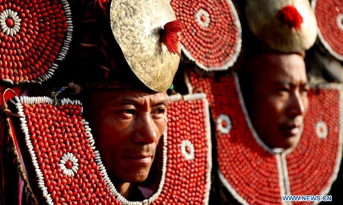 A man attends the opening ceremony of Myanmar Ethnics Culture Festival in Yangon, Myanmar, Feb. 1, 2020. The festival will last until Feb. 7. (Xinhua/U Aung)