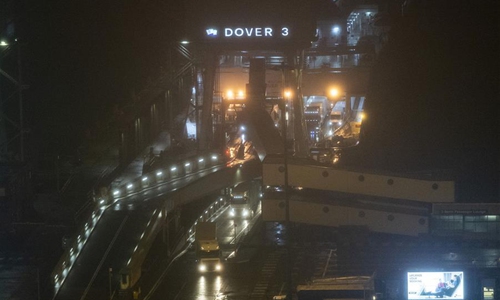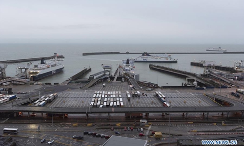 Photo taken on Feb. 1, 2020 shows the Port of Dover on the first day after Brexit in Dover, Britain. Britain officially left the European Union (EU) at 11 p.m. (2300 GMT) Friday, putting an end to its 47-year-long membership of the world's largest trading bloc. (Photo by Ray Tang/Xinhua)