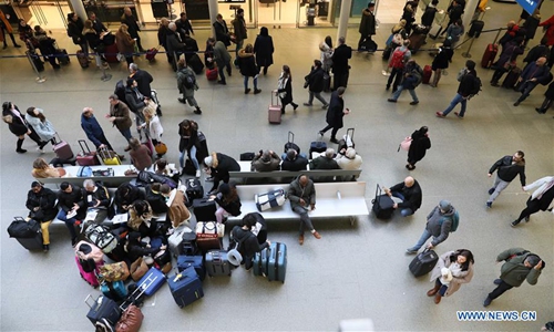 Photo taken on Feb. 1, 2020 shows a departure area at St. Pancras International Station in London, Britain. Britain officially left the European Union (EU) at 11 p.m. (2300 GMT) Friday, putting an end to its 47-year-long membership of the world's largest trading bloc. (Photo by Tim Ireland/Xinhua)