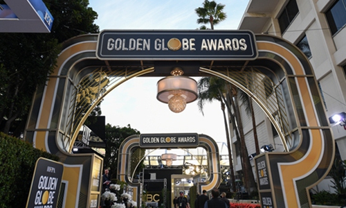 General view of the red-carpet area set up for the Golden Globes 2020 at The Beverly Hilton, in Beverly Hills, California, on Friday. Photo: AFP