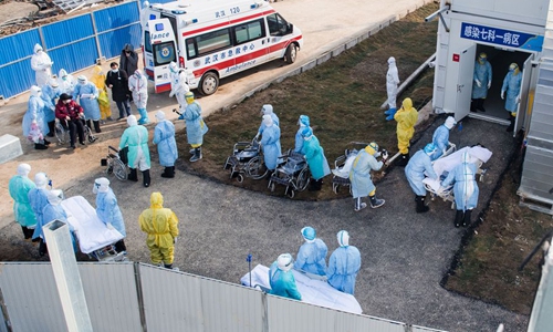 The first batch of patients are being transferred to Huoshenshan (Fire God Mountain) Hospital, which was delivered on Sunday after a 10-day construction.