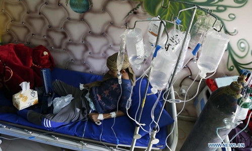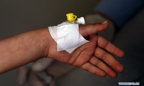 A child cancer patient waits to receive medical treatment at a cancer treating center in Sanaa, Yemen, on Feb. 4, 2020, the World Cancer Day. A WHO report in February 2019 estimated that number of cancer patients in Yemen reaches approximately 35,000. (Photo by Mohammed Mohammed/Xinhua)