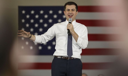 Democratic presidential candidate Pete Buttigieg, former mayor of South Bend, speaks at a rally in Cedar Rapids, Iowa, the United States, on Feb. 1, 2020. (Xinhua/Joel Lerner)