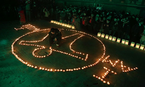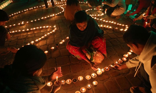 Nepalese people light candles during a candle light vigil to mark the World Cancer Day at Patan Durbar Square in Lalitpur, Nepal, Feb. 4, 2020. (Xinhua/Sunil Sharma)