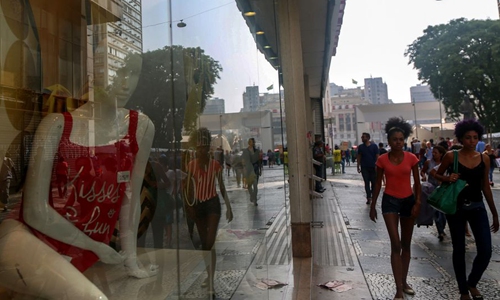 People walk on a commercial street in downtown Sao Paulo, Brazil, on Dec. 2, 2015. (Xinhua/Rahel Patrasso)