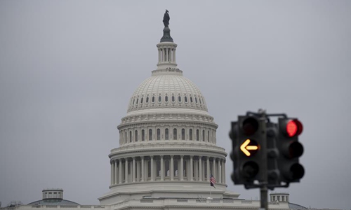 The Capitol and traffic lights are seen in Washington D.C., the United States, on Feb. 5, 2020. U.S. President Donald Trump was acquitted on Wednesday by the Senate after the chamber voted down both articles of impeachment against him that the House approved late last year. (Xinhua/Liu Jie)