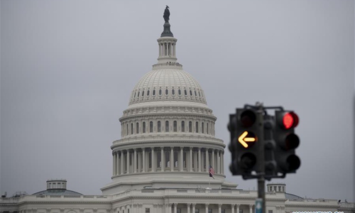 The Capitol and traffic lights are seen in Washington D.C., the United States, on Feb. 5, 2020. U.S. President Donald Trump was acquitted on Wednesday by the Senate after the chamber voted down both articles of impeachment against him that the House approved late last year. (Xinhua/Liu Jie)