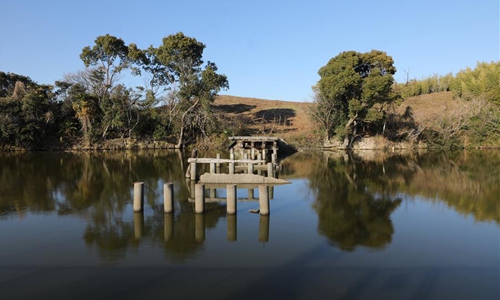 Photo taken on Feb. 4, 2020 shows a part of Itasuke Kofun, which is one of the tombs from Mozu-Furuichi Kofun Group, in Osaka Province, Japan. (Xinhua/Du Xiaoyi)