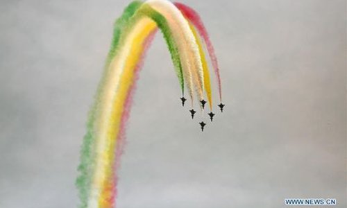 J-10 fighter jets of China's Bayi Aerobatic Team perform during the rehearsal of the Pakistan National Day army parade in Islamabad, capital of Pakistan, March 18. Pakistan National Day is celebrated annually on March 23.